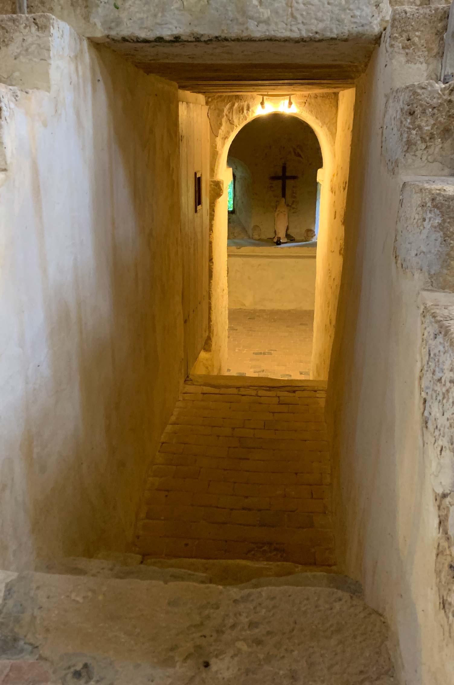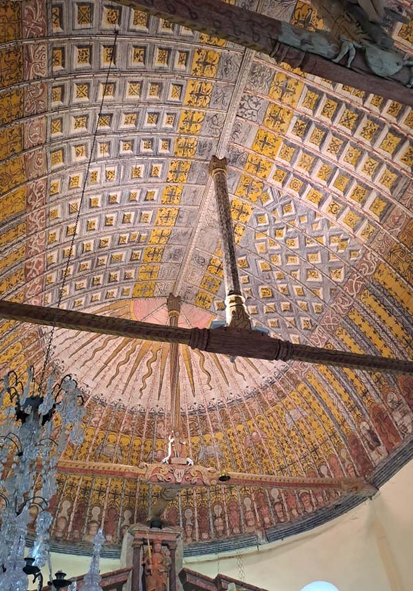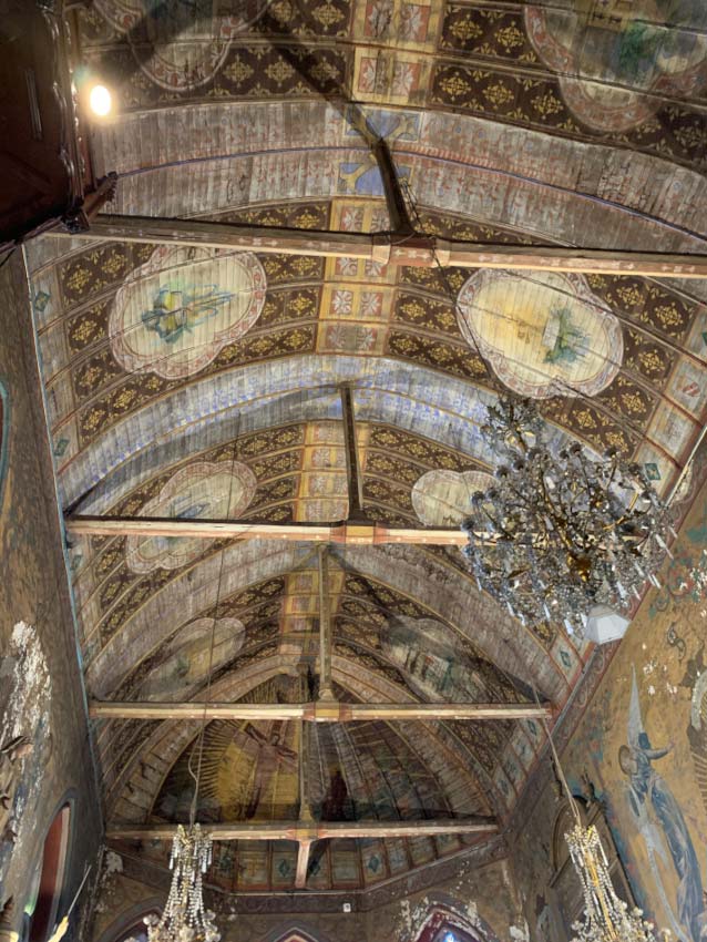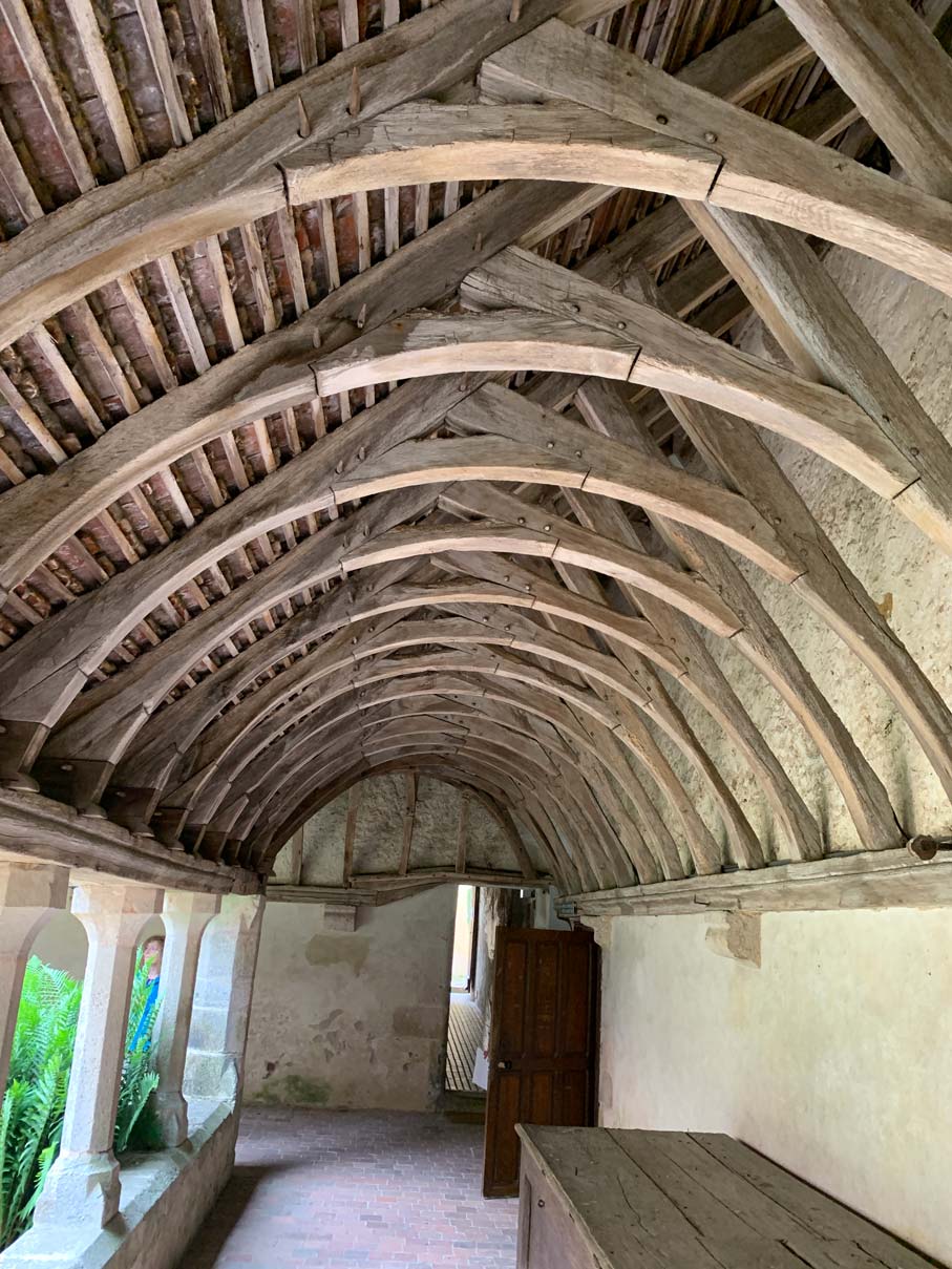 De l’abbaye il ne reste rien qu’une salle de collecte de la dîme qui était fermée lors de notre passage, une salle du monastère où les anciens éléments de charpente ont été récupérés et soigneusement réutilisés.