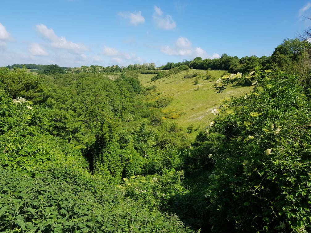 C’est un espace naturel sensible Natura 2000, protégé par le plan de gestion 2021-2031. Il réunit un espace d’élevage de moutons solognots et de chèvres des fossés, semi-sauvages, le tout formant un espace conservateur de la flore et la faune. Il est situé sur une pente où affleurent des argiles à silex, puis des marnes crayeuses et le sable du Perche au fond du vallon où poussent les genêts.Sur les marnes ensoleillées on trouve l’orchis bouc et des ophrys, la pimprenelle, la porcelle enracinée et la piloselle aux multiples vertus, toutes sortes de graminées dont la brize amourette, les trois sortes de renoncules (avec un petit exercice d’identification !), le lotier qui nourrit les chenilles des papillons azurés, etc.