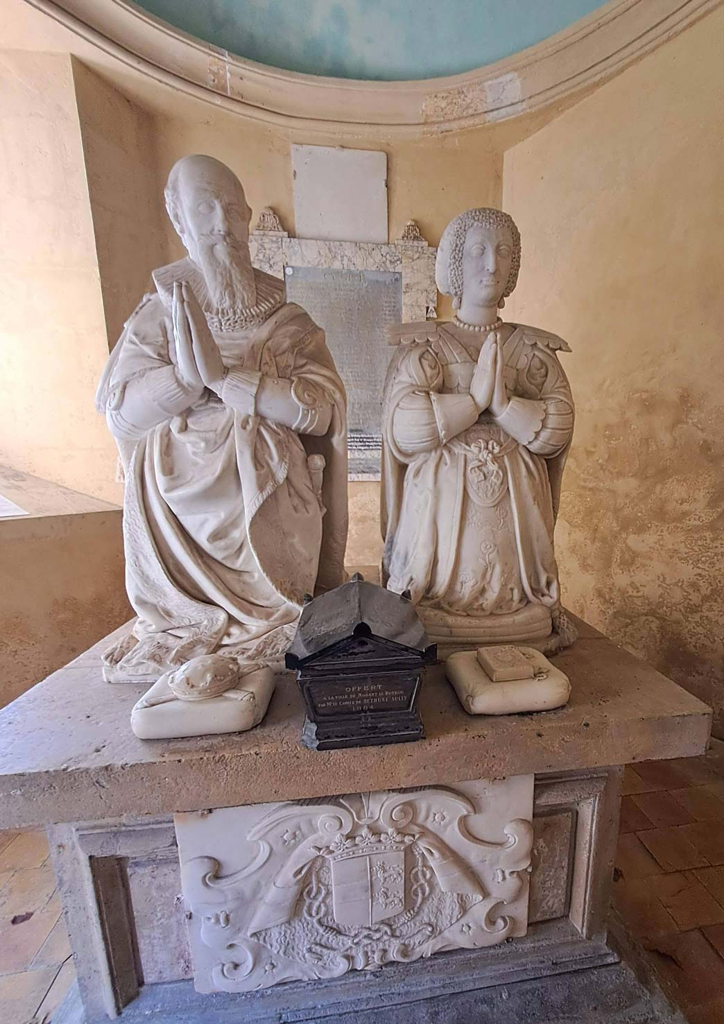 C’est pourquoi on trouve derrière l’église un tombeau-mausolée contenant deux belles statues de marbre blanc de Sully et de son épouse, dont l’épitaphe fut commandée par notre comte d’Orsay !